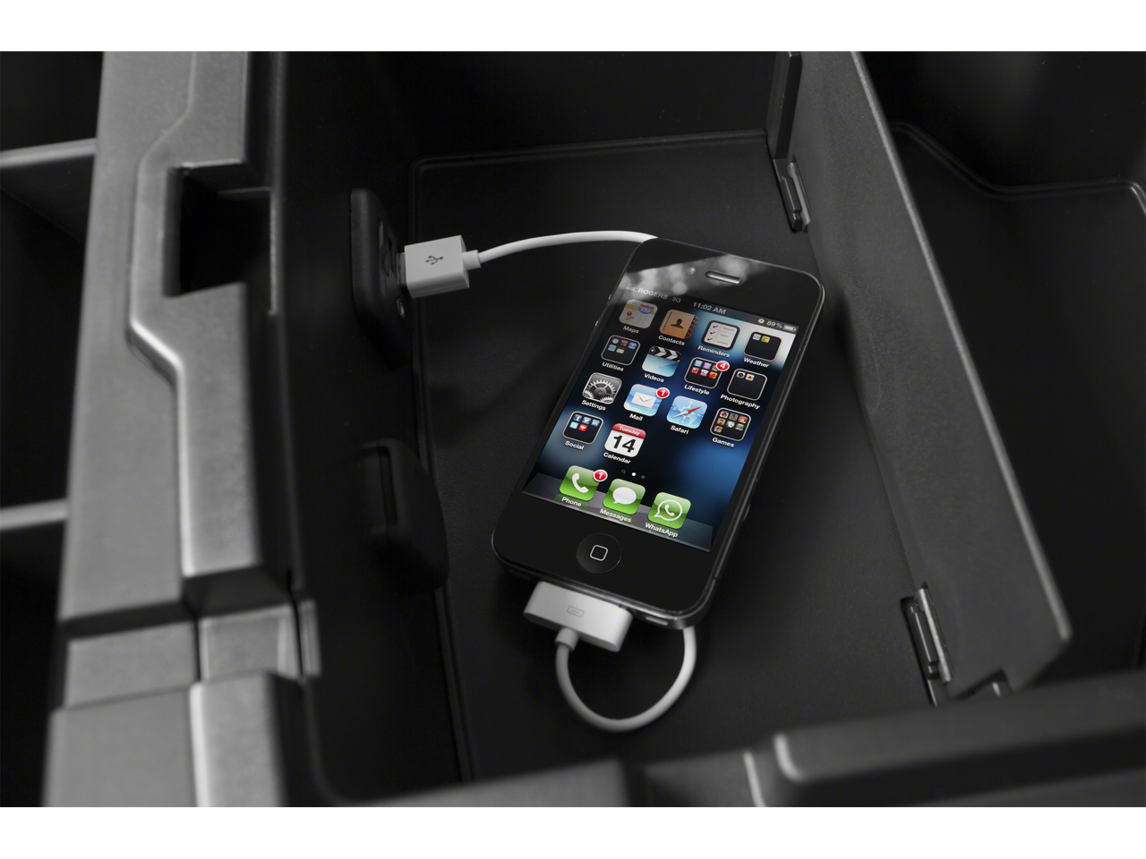 - Floor covering, Graphite-colored rubberized-vinyl, no floor mats included