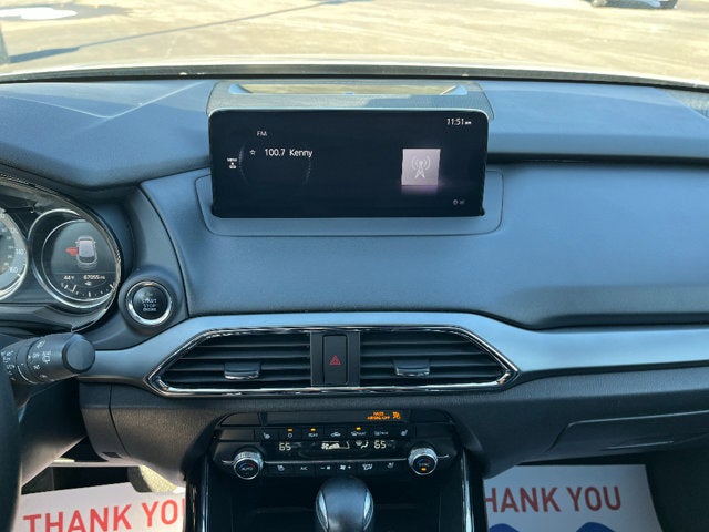 Carry lots of cargo while your passengers are comfortable. When you encounter slick or muddy roads, you can engage the four wheel drive on this Mazda CX-9 and drive with confidence. It offers Android Auto for seamless smartphone integration. Apple CarPlay: Seamless smartphone integration for this vehicle - stay connected and entertained on the go! This unit offers Automatic Climate Control for personalized comfort. It has an automatic transmission. See what's behind you with the back up camera on it. It enhances safety with a blind spot monitor, alerting drivers to potential dangers in adjacent lanes. Maintaining a stable interior temperature in this 1/2 ton suv is easy with the climate control system. Easily set your speed in the vehicle with a state of the art cruise control system. Increase or decrease velocity with the touch of a button. The Electronic Stability Control will keep you on your intended path. This Mazda CX-9 has a 4 Cyl, 2.5L high output engine. The fog lights cut through the weather so you can see what's ahead. Enjoy the tried and true gasoline engine in this Mazda CX-9. Bluetooth® technology is built into the vehicle, keeping your hands on the steering wheel and your focus on the road. Quickly unlock this model with keyless entry. This model's Lane Departure Warning helps keep you in your lane. The leather seats in the Mazda CX-9 are a must for buyers looking for comfort, durability, and style. With the adjustable lumbar support in this 1/2 ton suv your back will love you. Enjoy the convenience of the power liftgate on this 1/2 ton suv. The rear parking assist technology on the Mazda CX-9 will put you at ease when reversing. The system alerts you as you get closer to an obstruction. Never get into a cold vehicle again with the remote start feature on this 2023 Mazda CX-9 . The vehicle shines with an exquisite metallic silver exterior finish.